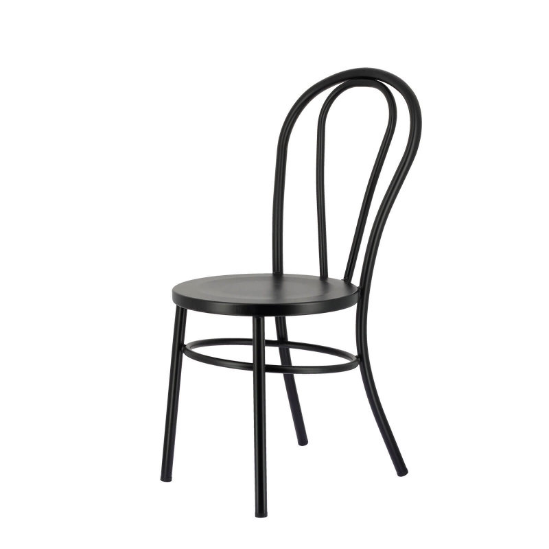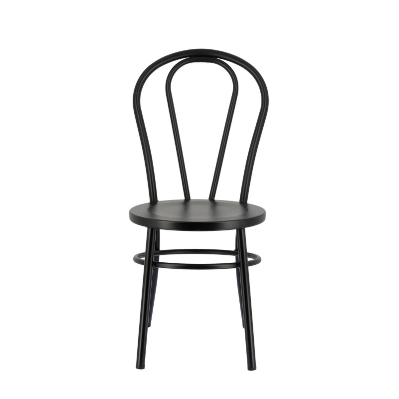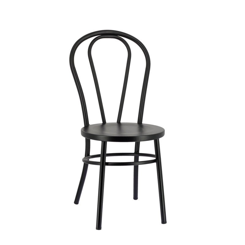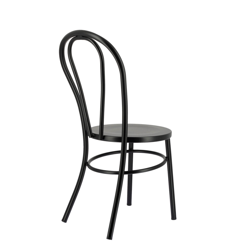 La chaise bistrot en métal Madina apportera de la personnalité à votre pièce. Composée en acier galvanisé noir, dotée d'un arceau de renfort rond situé sous l'assise ainsi que d'un dossier arrondi, son élégance et sa qualité de conception feront la différence. Influencée directement par le style bistrot, cette chaise vous fera profiter de bons moments à table. Résistante à toute épreuve, elle a également l'avantage d'être facile à vivre au quotidien puisqu'un chiffon doux suffit à son entretien.