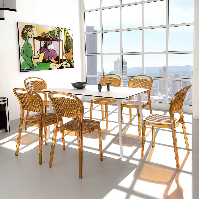 La chaise transparente Bee s'intègrera parfaitement à vos différentes décorations intérieures. Son effet nid d'abeille présent sur son dossier et son assise fera du plus bel effet dans tous les intérieurs. Très pratique, ce modèle est empilable par 4 et peut donc se ranger facilement. On aime tout particulièrement, la transparence du produit qui donnera de la luminosité à votre pièce.