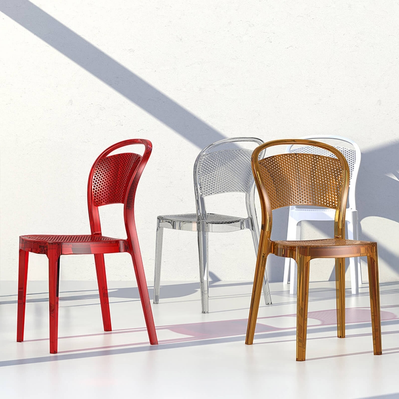 Les lignes douces et arrondies de la chaise en polycarbonate Bee sauront sublimer votre séjour.