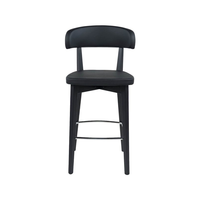 Inspiré par le design scandinave, le tabouret Siren séduit par sa sobriété et son confort. L'alliance de sa silhouette en hêtre massif, de son assise et de son dossier rembourrés et revêtus en synthétique lui confère la juste dose de cachet et de caractère. Toutefois, ce qui fait la force de Siren, c'est sa sensibilité pour le confort. Son dossier et son assise sont tous deux garnis d'un généreux rembourrage. La forme incurvée de son dossier épouse et enveloppe la forme du dos afin de procurer un siège agréable au quotidien. La présence d'un repose-pied en acier vient compléter l'ensemble. S'élevant à une hauteur de 65cm, le tabouret Siren est idéal pour accompagner une table haute ou un îlot de cuisine de 90 cm.