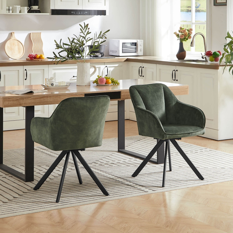Pratique : son assise est pivotante à 180° avec retour automatique pour faciliter les entrées et sorties de table.