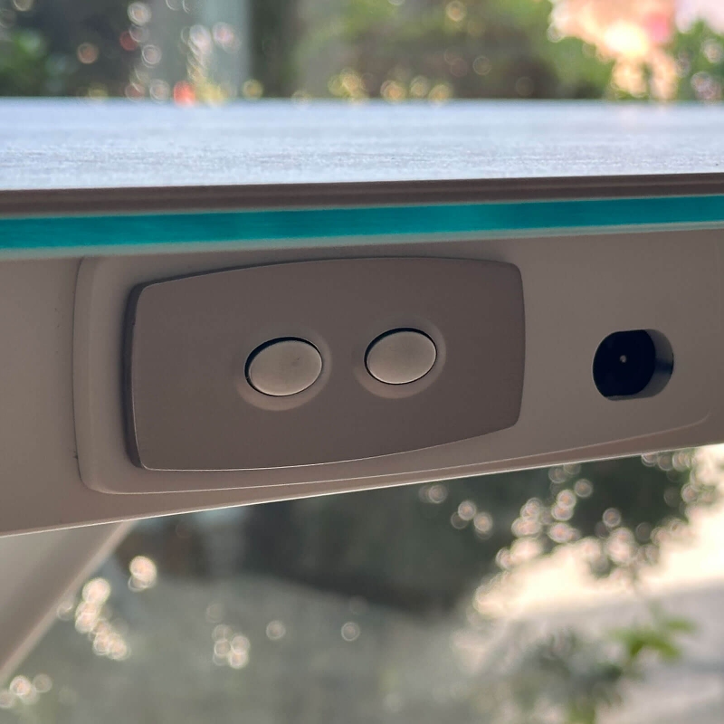 Pratique : plateau en céramique facile à entretenir. Réglage de la hauteur par vérin à gaz électrique.